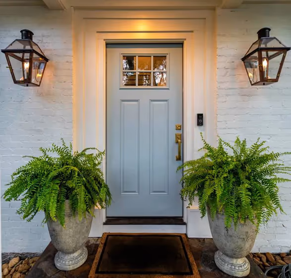 Looking for a fresh new look for your house exterior or starting from skretch? We’ve collected pictures of real-life homes that have been painted with this cool hue. Find inspiration for your house’s exterior, front doors, gates, shutters, frames or windows.