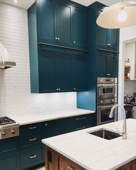 Want a stylish kitchen? View real-life photo examples of this fascinating cool hue is paired with backsplashes, countertops, and hardware.
