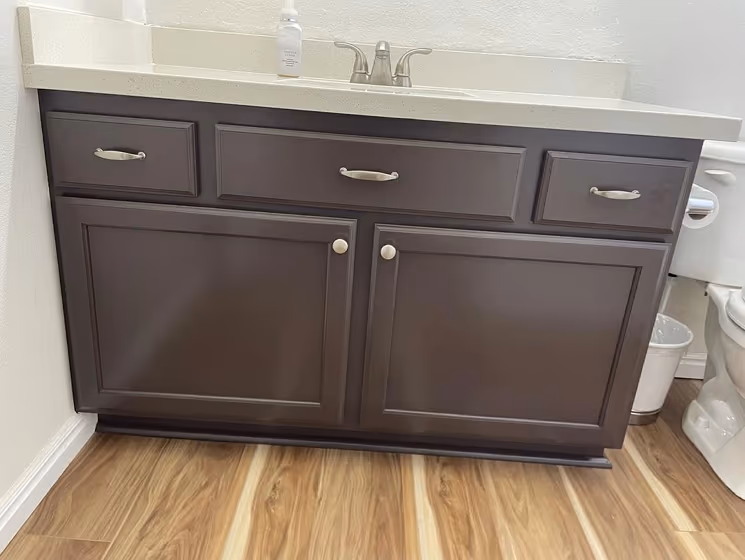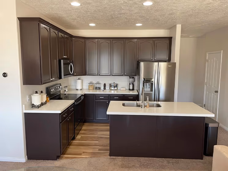 Sherwin Williams SW 6006 on kitchen cabinets (2 photos)