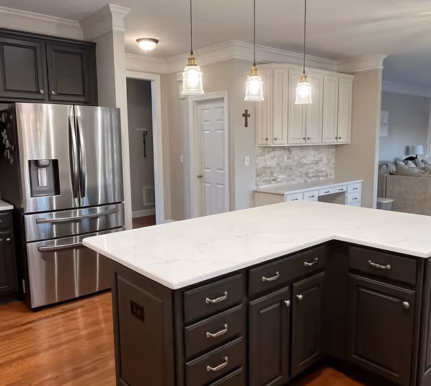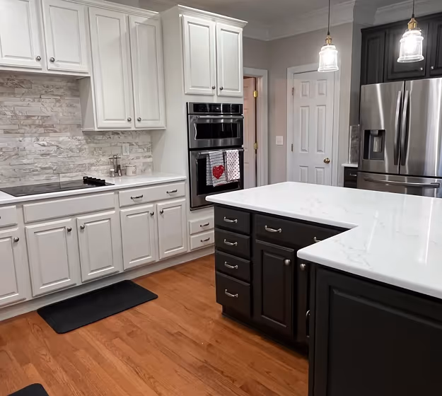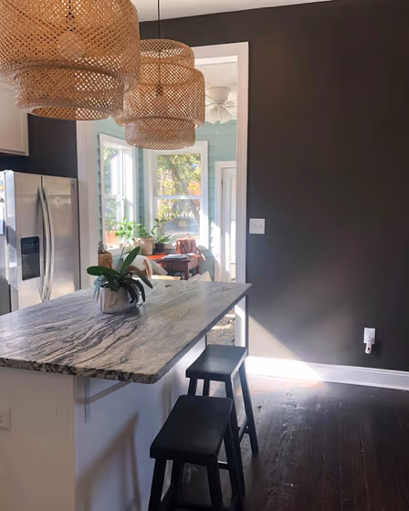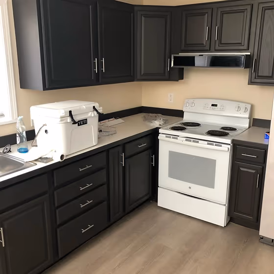 Sherwin Williams SW 7020 on kitchen cabinets (3 photos)