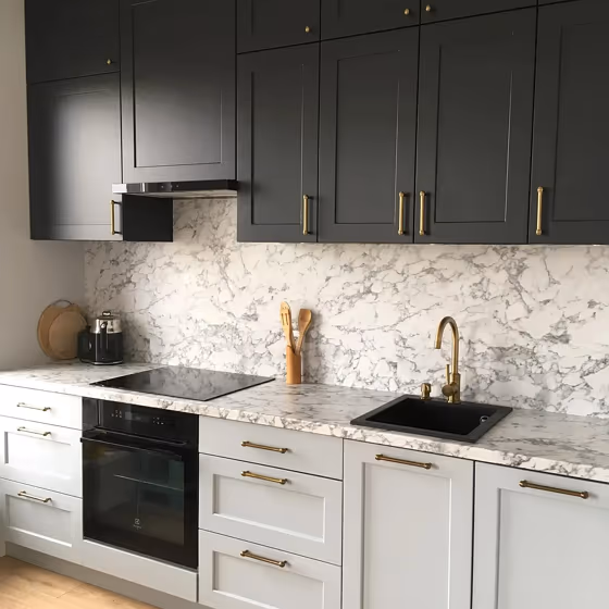 Want a stylish kitchen? View real-life photo examples of this fascinating cool hue is paired with backsplashes, countertops, and hardware.