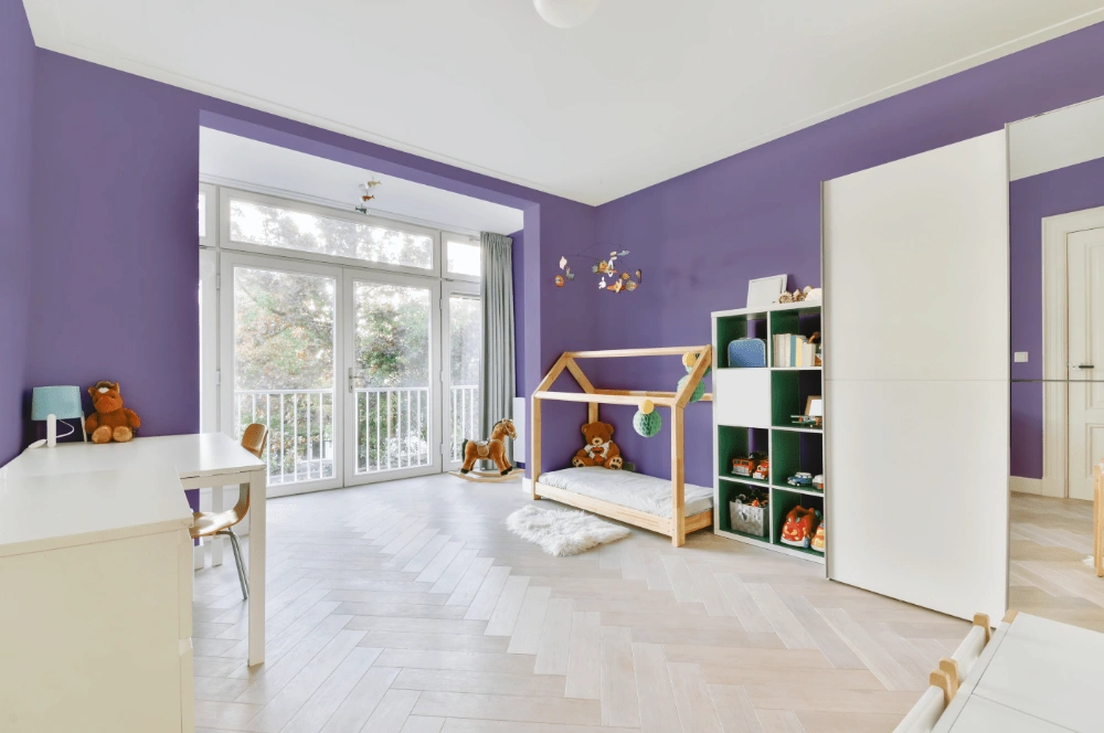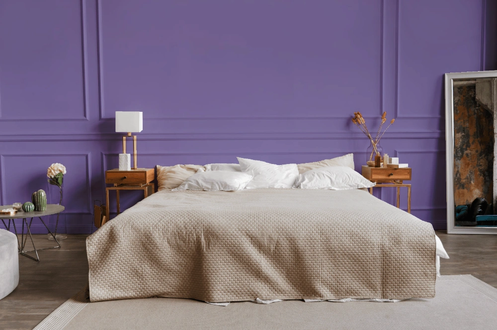 - Cool purple shades add a touch of elegance and creativity to a room, making it feel luxurious and imaginative, ideal for bedrooms, creative spaces, and living areas.