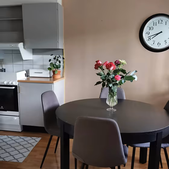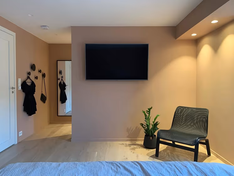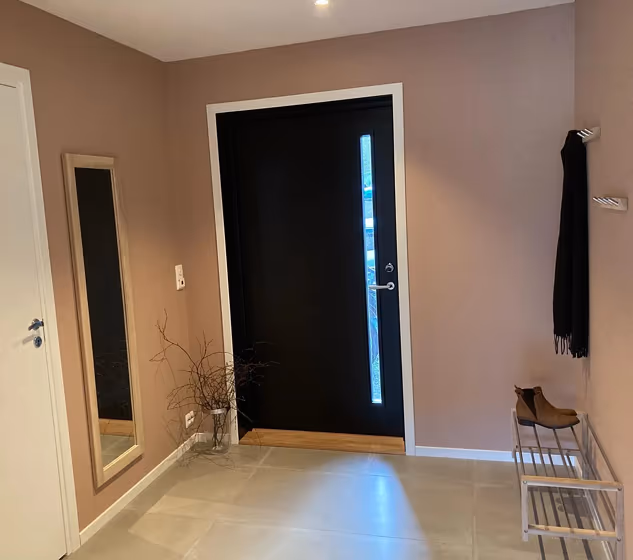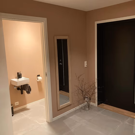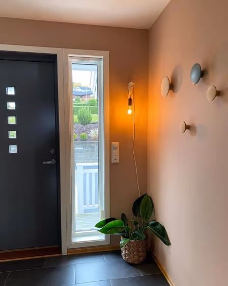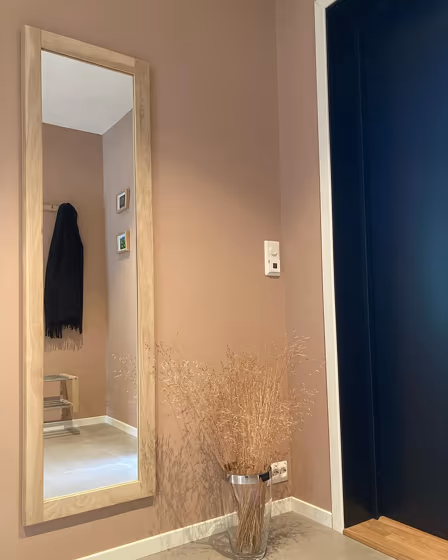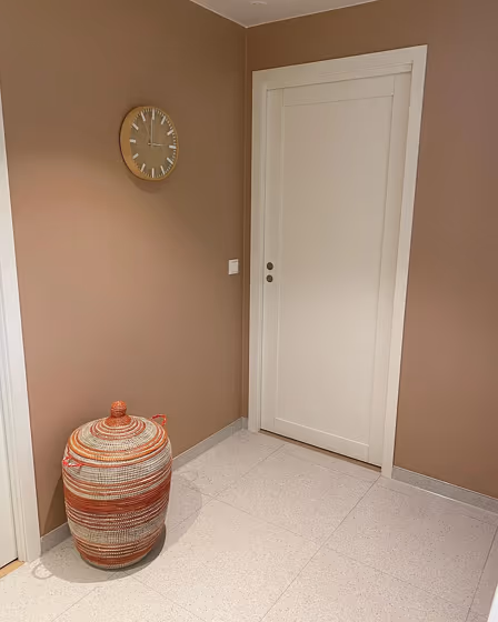 This color scheme is a combination of two shades that are opposite each other on the color wheel. The high contrast between these colors creates a vibrant and dynamic visual effect. For the color Blushing Peach with a red hue, complementary colors are those with a green hue close to 205, such as Jotun Nordic Breeze and Gustavian Blue.