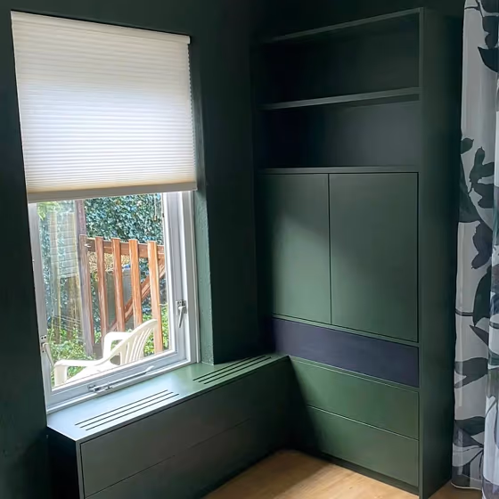 Let’s dive into a full Bottle green paint color review. Take a look at pictures of real interiors and exteriors painted with beautiful RAL 6007. Find out if this gorgeous warm green paint color would look great on your living room walls or trims, kitchen cabinet, bedroom accent wall, bathroom or house exterior.