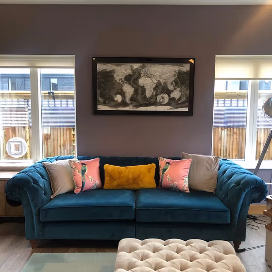 Check out this stunning Mid-tone color used in real living rooms. Explore how this Purple shade can create a unique space
