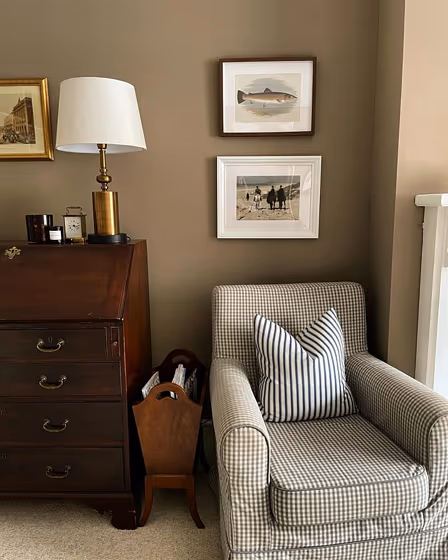 View the photos of real spaces painted with this that were not included in specific categories.Close-ups, painted furniture, storages and dressers, hallways, stairs and ceilings.