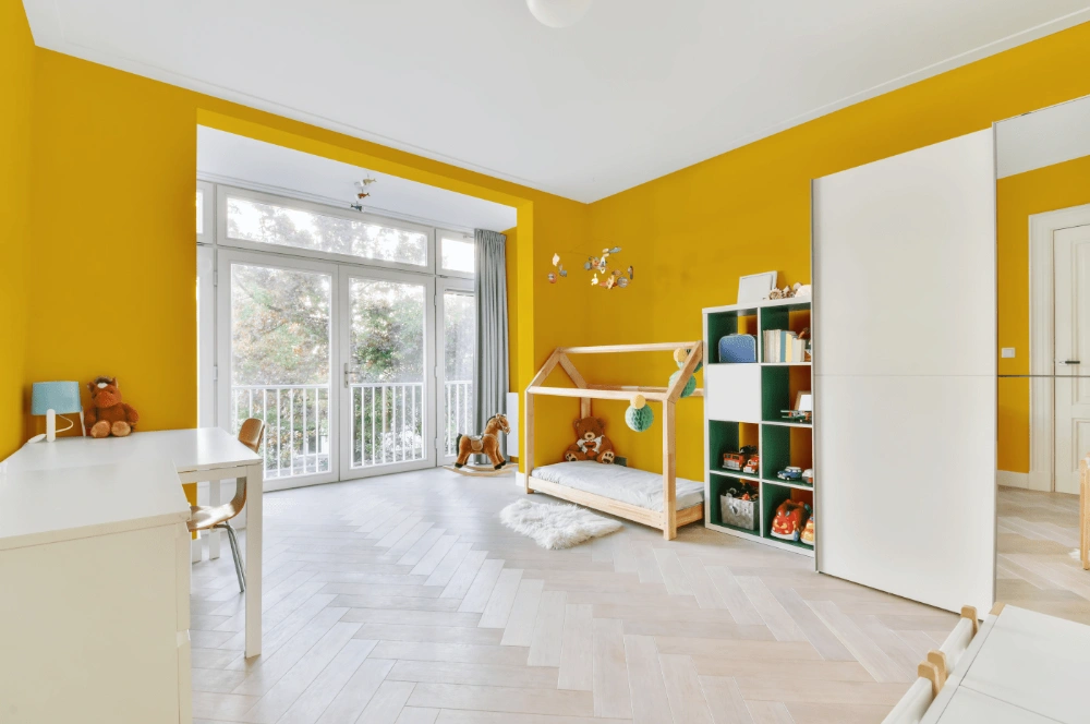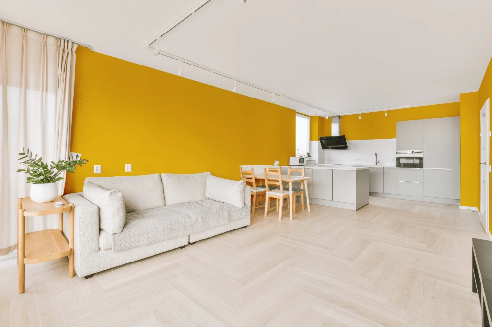 - Warm yellow shades bring a sunny and cheerful atmosphere to a space, making it feel lively and welcoming, perfect for kitchens, living rooms, and play areas.