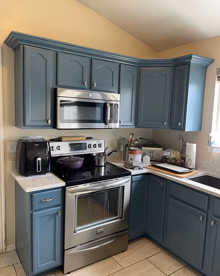 Sherwin Williams SW 0048 on kitchen cabinets (3 photos)