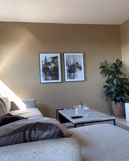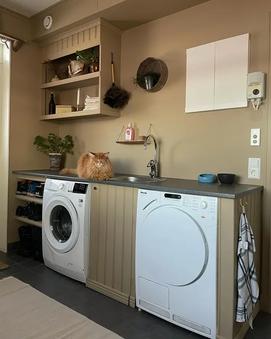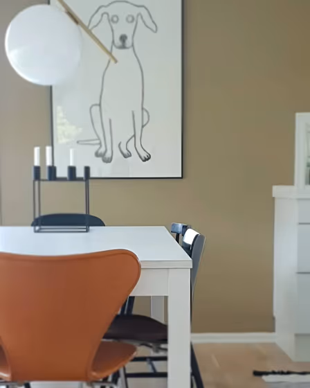 This color scheme is a combination of two shades that are opposite each other on the color wheel. The high contrast between these colors creates a vibrant and dynamic visual effect. For the color Cashmere with a orange hue, complementary colors are those with a blue hue close to 214, such as Jotun Gustavian Blue and Classic Blue.