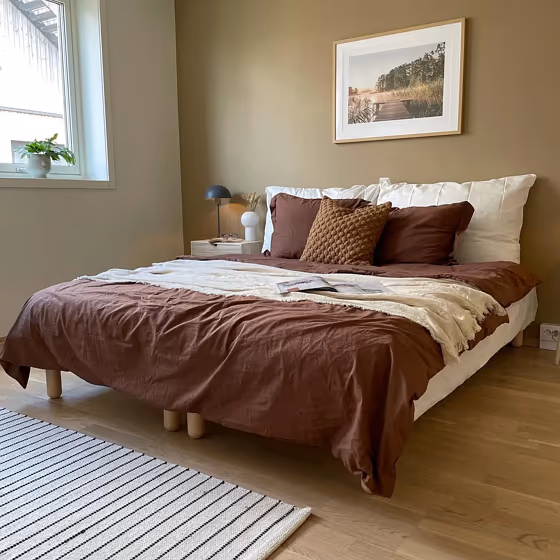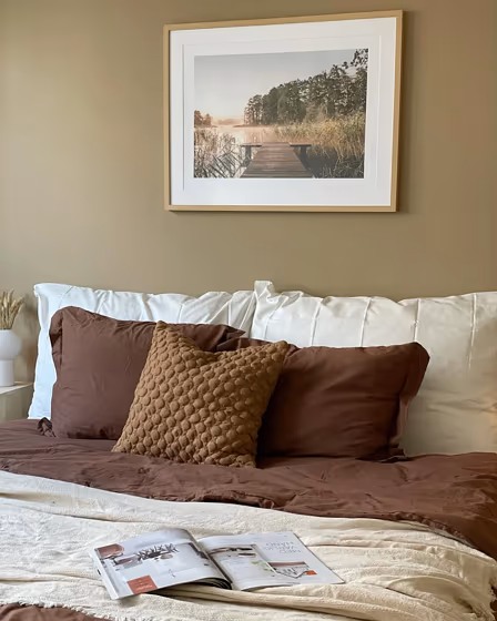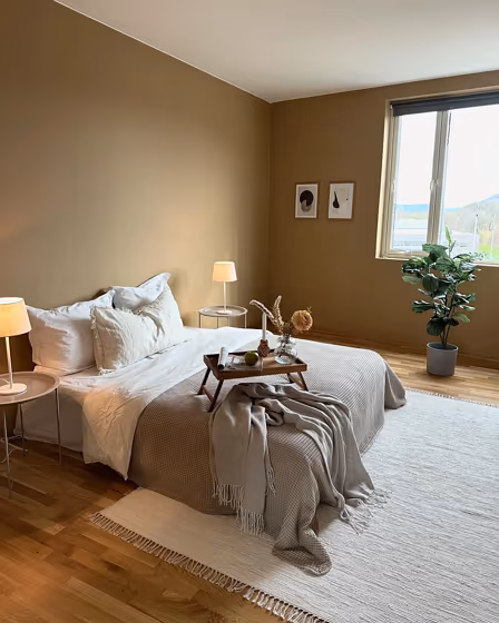 We’ve hand-picked a beautiful collection of photos of this amazing Beige shade used in real bedrooms. Take a look and imagine how this wonderful warm Mid-tone paint color could transform your own bedroom space.