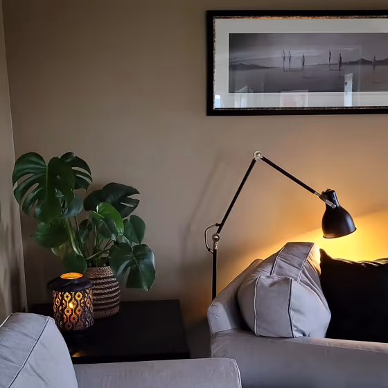 Act like a pro: When choosing paint with an LRV of 34.87%, pay attention to your bulbs' brightness. Light brightness is measured in lumens. The lower the paint's LRV, the higher lumen level you need. Every square foot of room needs at least 40 lumens. That means for a 200 ft2 living room you’ll need about 8000 lumens of light – e.g., eight 1000 lm bulbs.