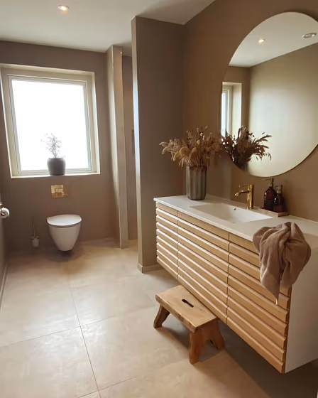 Looking for inspiration for your dream bathroom renovation project? These beautiful handpicked photos will show you this delightfully warm Mid-tone real bathrooms.
