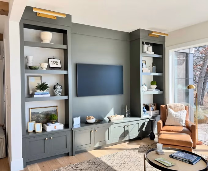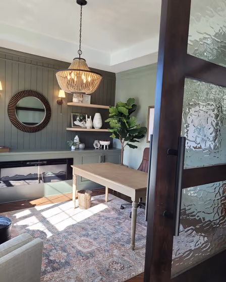 Check out this stunning Dark color used in real living rooms. Explore how this Green shade can create a unique space