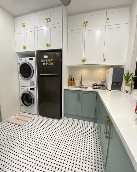 Want a stylish kitchen? View real-life photo examples of this fascinating cool hue is paired with backsplashes, countertops, and hardware.