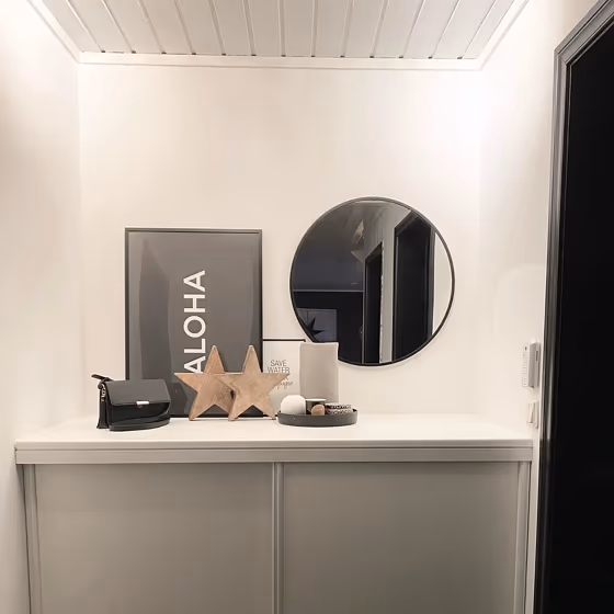 This color scheme is a combination of two shades that are opposite each other on the color wheel. The high contrast between these colors creates a vibrant and dynamic visual effect. For the color Classic White with a orange hue, complementary colors are those with a blue hue close to 231, such as Jotun Classic Blue.