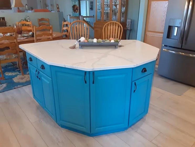 Sherwin Williams SW 6487 on kitchen cabinets (2 photos)