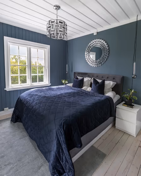- Cool blue shades make a room feel sleek, fresh, and modern, perfect for bedrooms, bathrooms, and home offices where a sense of calm and sophistication is desired.