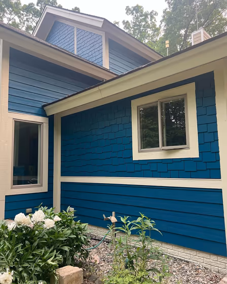This color scheme is a combination of two shades that are opposite each other on the color wheel. The high contrast between these colors creates a vibrant and dynamic visual effect. For the color Connor's Lakefront with a green hue, complementary colors are those with a red hue close to 13, such as Sherwin Williams White Beet and Weathervane.