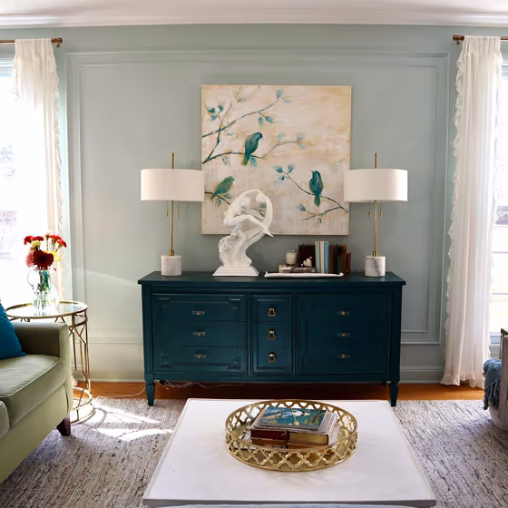 Check out this stunning Mid-tone color used in real living rooms. Explore how this Green shade can create a unique space