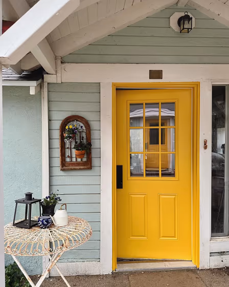 Looking for a fresh new look for your house exterior or starting from skretch? We’ve collected pictures of real-life homes that have been painted with this cool hue. Find inspiration for your house’s exterior, front doors, gates, shutters, frames or windows.