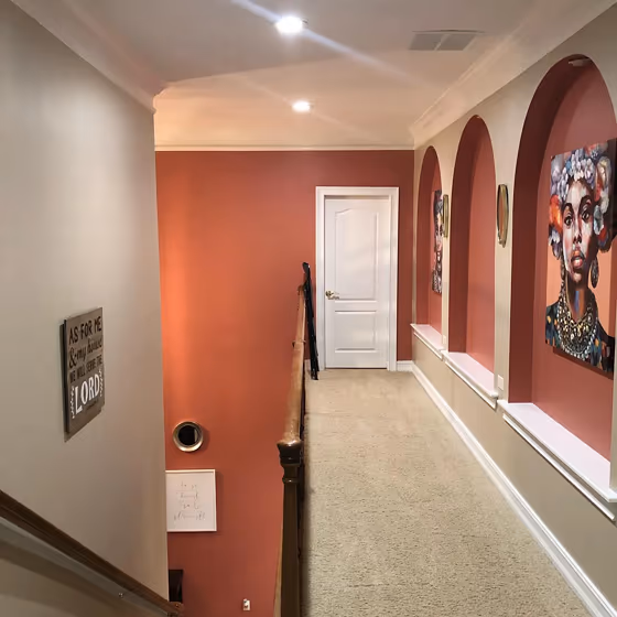 View the photos of real spaces painted with this that were not included in specific categories.Close-ups, painted furniture, storages and dressers, hallways, stairs and ceilings.