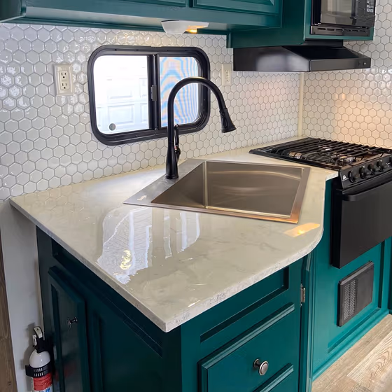 Want a stylish kitchen? View real-life photo examples of this fascinating cool hue is paired with backsplashes, countertops, and hardware.