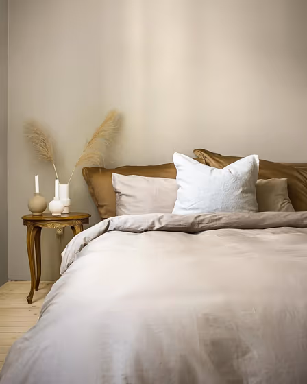 We’ve hand-picked a beautiful collection of photos of this amazing Beige shade used in real bedrooms. Take a look and imagine how this wonderful warm Mid-tone paint color could transform your own bedroom space.