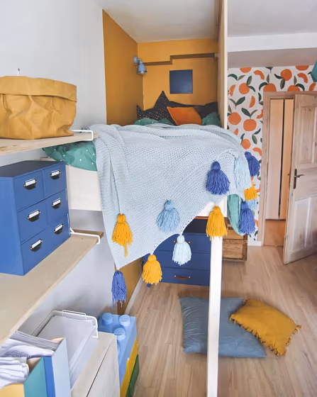 - Warm yellow shades bring a sunny and cheerful atmosphere to a space, making it feel lively and welcoming, perfect for kitchens, living rooms, and play areas.