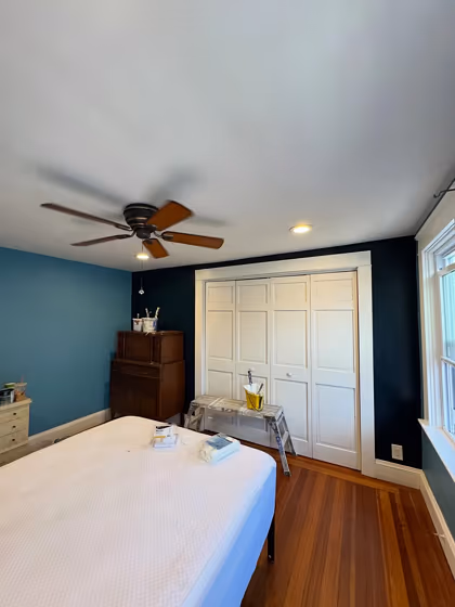 View the photos of real spaces painted with this blue that were not included in specific categories.Close-ups, painted furniture, storages and dressers, hallways, stairs and ceilings.