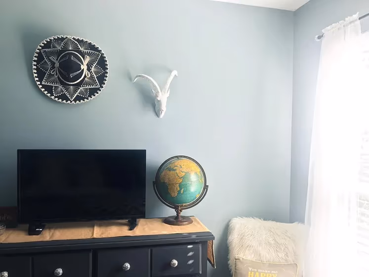 Check out this stunning Mid-tone color used in real living rooms. Explore how this Blue shade can create a unique space