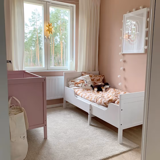 This color scheme is a combination of two shades that are opposite each other on the color wheel. The high contrast between these colors creates a vibrant and dynamic visual effect. For the color Delightful Pink with a red hue, complementary colors are those with a green hue close to 198, such as Jotun Dark Teal and Nordic Breeze.