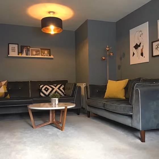 Check out this stunning Mid-tone color used in real living rooms. Explore how this Grey shade can create a unique space