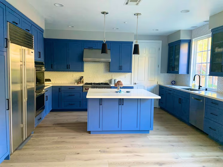 Want a stylish kitchen? View real-life photo examples of this fascinating cool hue is paired with backsplashes, countertops, and hardware.
