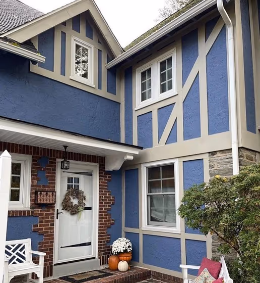 Looking for a fresh new look for your house exterior or starting from skretch? We’ve collected pictures of real-life homes that have been painted with this cool hue. Find inspiration for your house’s exterior, front doors, gates, shutters, frames or windows.