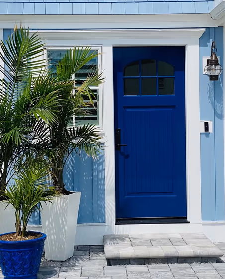 Looking for a fresh new look for your house exterior or starting from skretch? We’ve collected pictures of real-life homes that have been painted with this cool hue. Find inspiration for your house’s exterior, front doors, gates, shutters, frames or windows.
