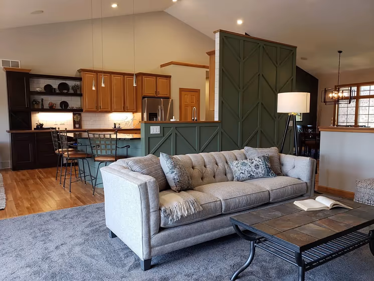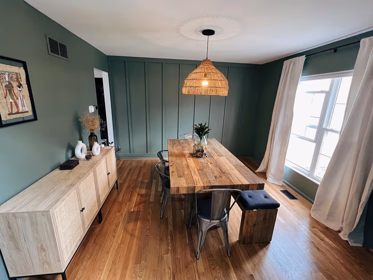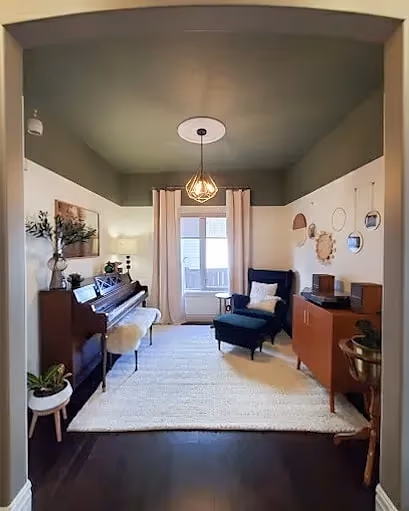 Check out this stunning Dark color used in real living rooms. Explore how this Green shade can create a unique space