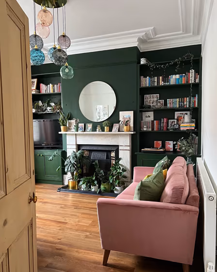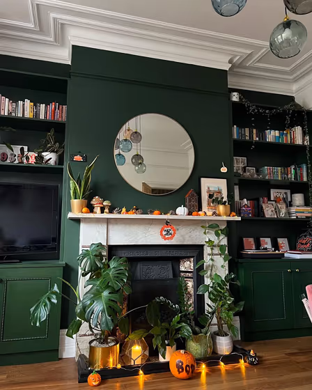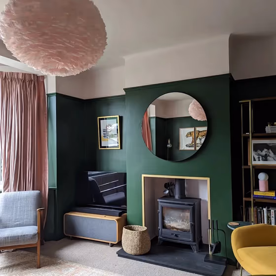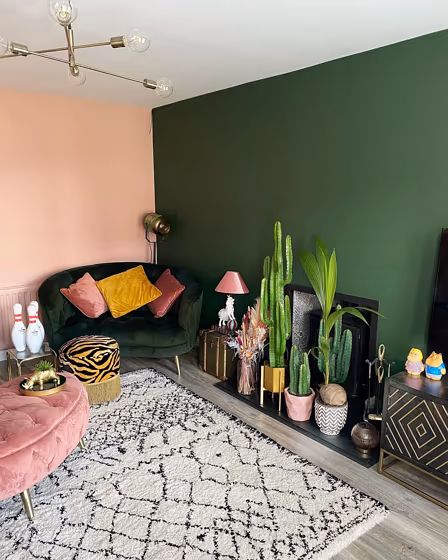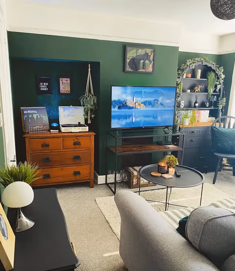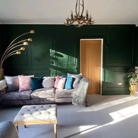 Check out this stunning Dark color used in real living rooms. Explore how this Green shade can create a unique space