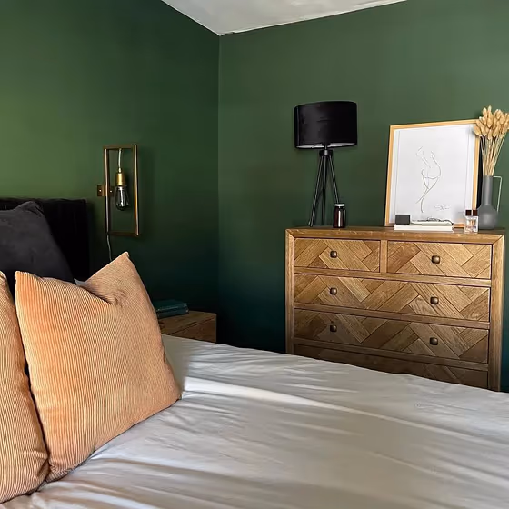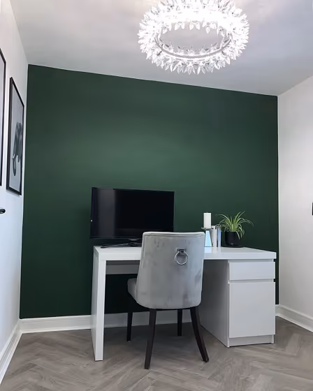 Farrow and Ball's W55 Duck Green exudes sophistication and charm, adding a touch of elegance to any space. This deep and rich green hue creates a cozy and inviting atmosphere, perfect for both traditional and modern interiors. For a harmonious look, pair Duck Green with soft neutrals like Wimborne White or Slipper Satin. To create a bold contrast, consider combining it with Hague Blue or Brinjal. Whether used as a statement wall color or for accent pieces, Duck Green is sure to bring warmth and character to your home.