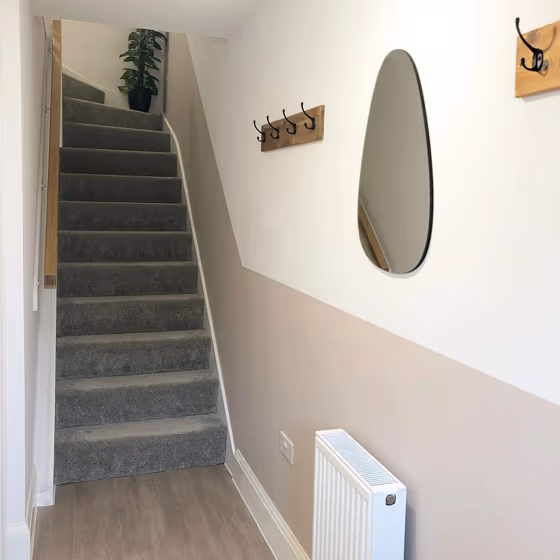 View the photos of real spaces painted with this that were not included in specific categories.Close-ups, painted furniture, storages and dressers, hallways, stairs and ceilings.
