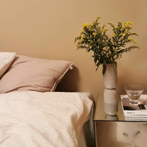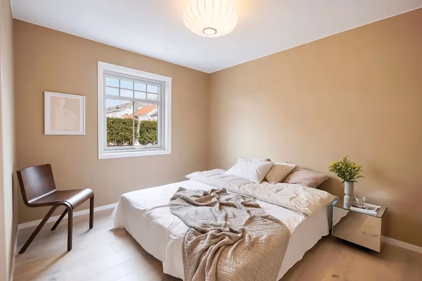 We’ve hand-picked a beautiful collection of photos of this amazing Beige shade used in real bedrooms. Take a look and imagine how this wonderful warm Mid-tone paint color could transform your own bedroom space.