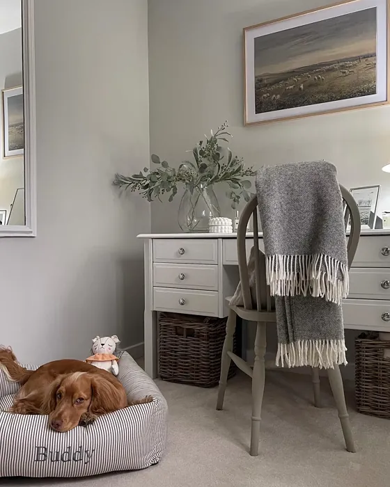 Let’s dive into a full Dusted Moss 2 paint color review. Take a look at pictures of real interiors and exteriors painted with beautiful 50YY 63/041. Find out if this gorgeous warm grey paint color would look great on your living room walls or trims, kitchen cabinet, bedroom accent wall, bathroom or house exterior.
