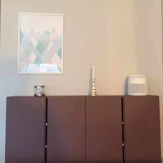 This color scheme is a combination of two shades that are opposite each other on the color wheel. The high contrast between these colors creates a vibrant and dynamic visual effect. For the color Dusty Purple with a red hue, complementary colors are those with a green hue close to 175, such as Jotun Dark Teal and Nordic Breeze.