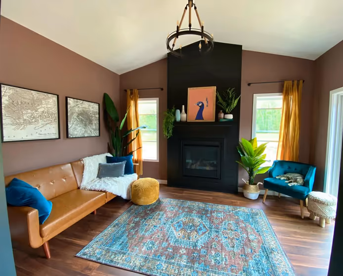 Check out this stunning Dark color used in real living rooms. Explore how this Pink shade can create a unique space