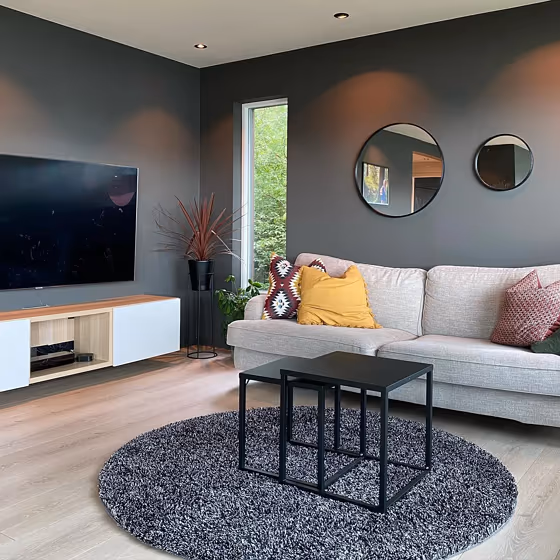 Check out this stunning Dark color used in real living rooms. Explore how this Grey shade can create a unique space