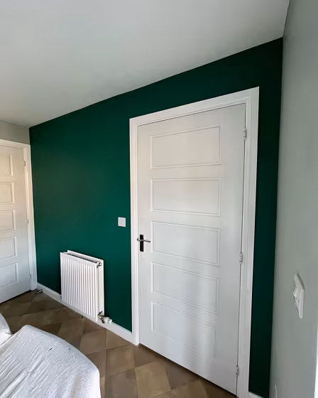Let’s dive into a full Emerald Glade paint color review. Take a look at pictures of real interiors and exteriors painted with beautiful 49GG 17/232. Find out if this gorgeous cold green paint color would look great on your living room walls or trims, kitchen cabinet, bedroom accent wall, bathroom or house exterior.