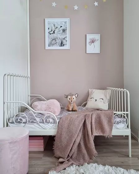 Empress X477 is a dusty pink paint color. Empress can be used in kitchens, bathrooms, bedrooms, nursery, and garden rooms The warm gray undertones give this muted pink color a cozy, pensive vibe. It is possible to pair with a green-based white for a timeless finish.