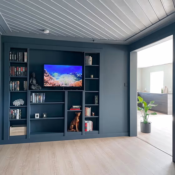 Check out this stunning Dark color used in real living rooms. Explore how this Blue shade can create a unique space