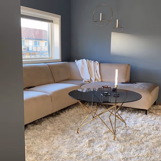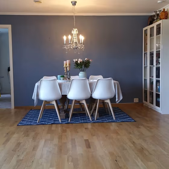 This color scheme is a combination of two shades that are opposite each other on the color wheel. The high contrast between these colors creates a vibrant and dynamic visual effect. For the color Evening Light with a green hue, complementary colors are those with a red hue close to 26, such as Jotun Shade and Rustic Brown.