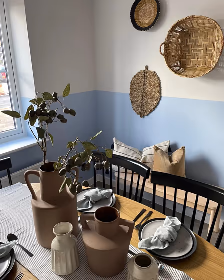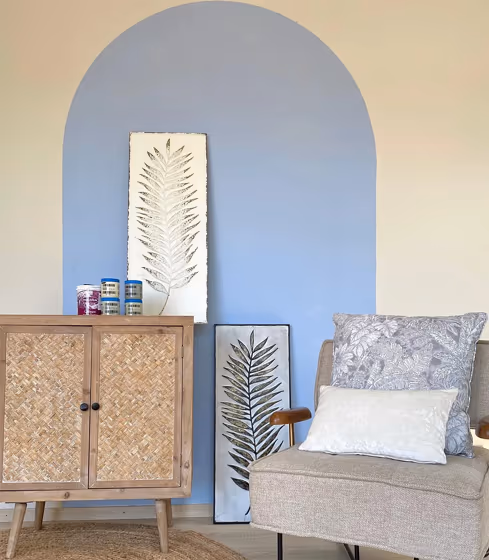 This color scheme is a combination of two shades that are opposite each other on the color wheel. The high contrast between these colors creates a vibrant and dynamic visual effect. For the color Faded Sky with a green hue, complementary colors are those with a red hue close to 26, such as Dulux Cocoa Blush 5 and Chalk Blush 3.