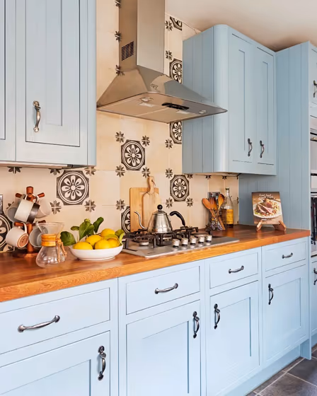 Want a stylish kitchen? View real-life photo examples of this fascinating cool hue is paired with backsplashes, countertops, and hardware.